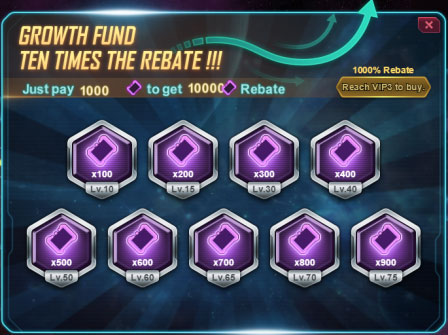Buying the Growth Fund with IC can grant players a great amount of IC rebate after reaching the required level in the game. The total rebate will be ten times as much as the IC you paid for the fund.